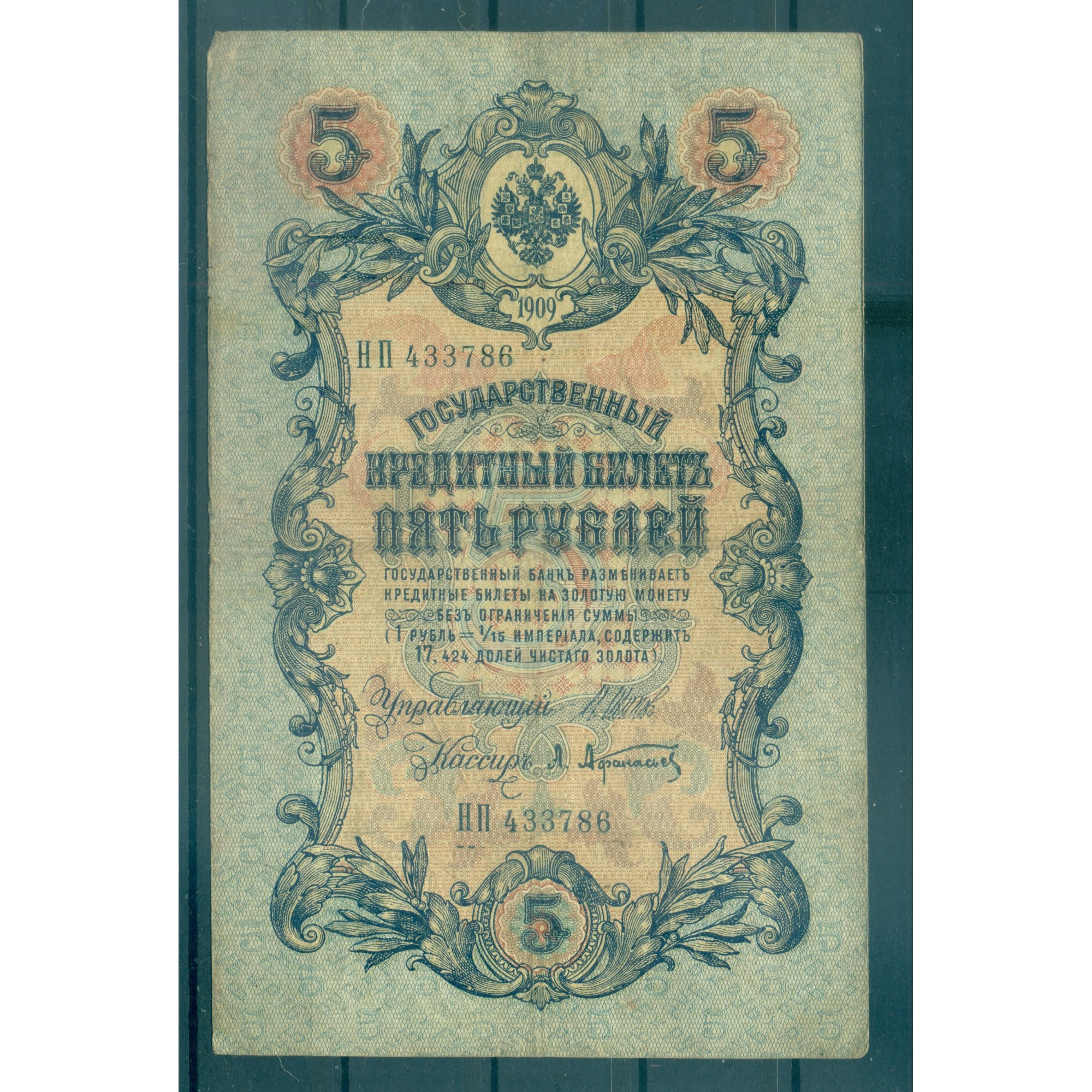 Russian Empire 1909 - Russian Empire State Bank note.