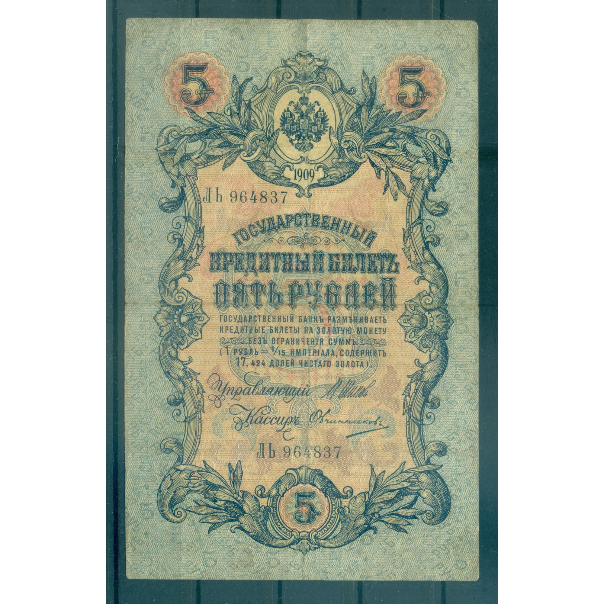 Russian Empire 1909 - Russian Empire State Bank note.