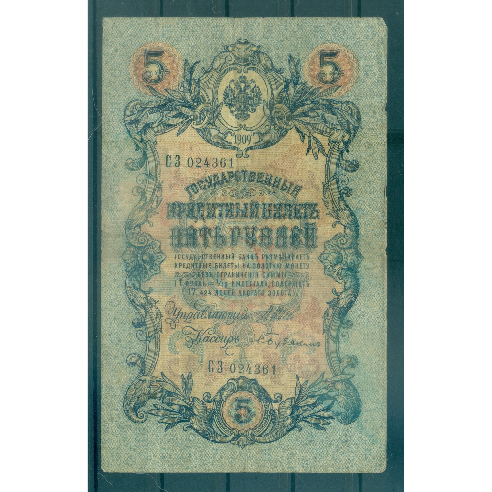 Empire Russe 1909 - Billet de la Banque d'Ètat de l'Empire Russe.