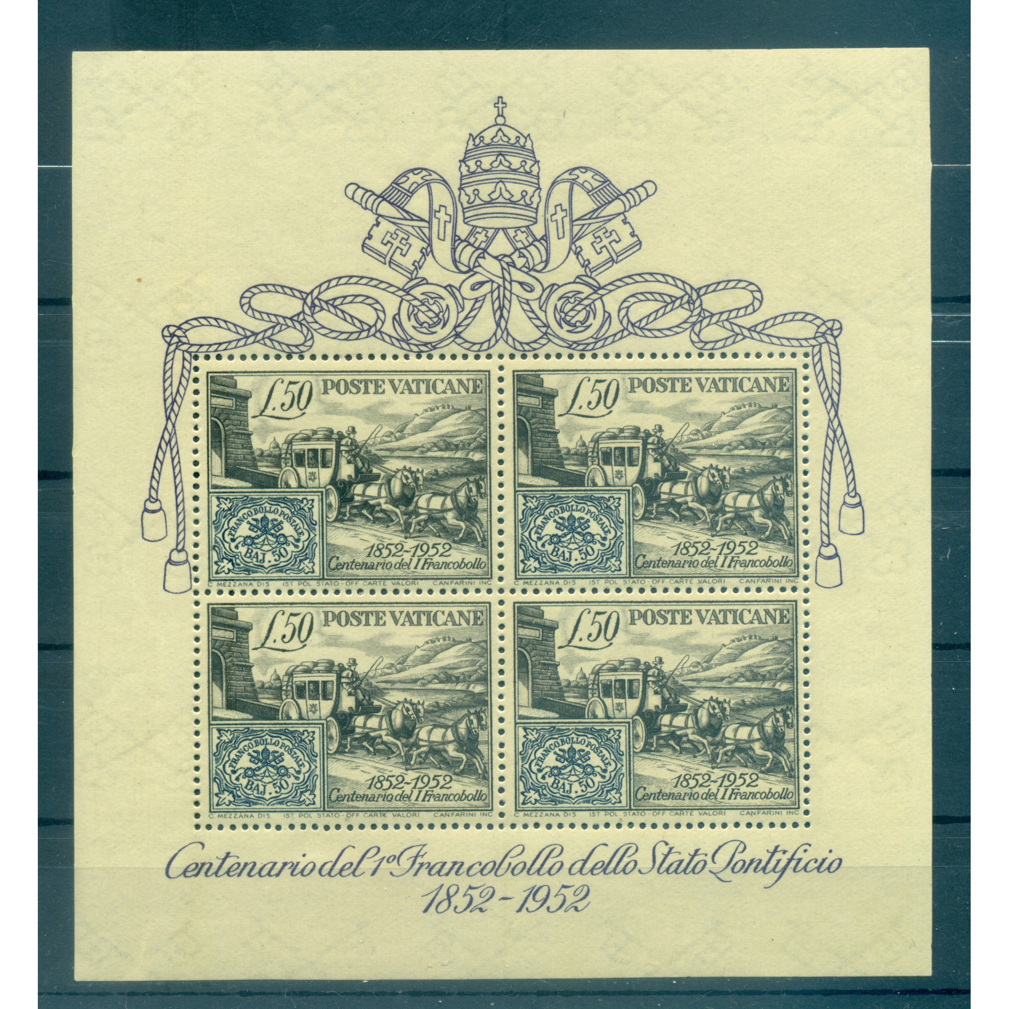 Vaticano 1952 - Centenario del francobollo degli Stati Pontifici.