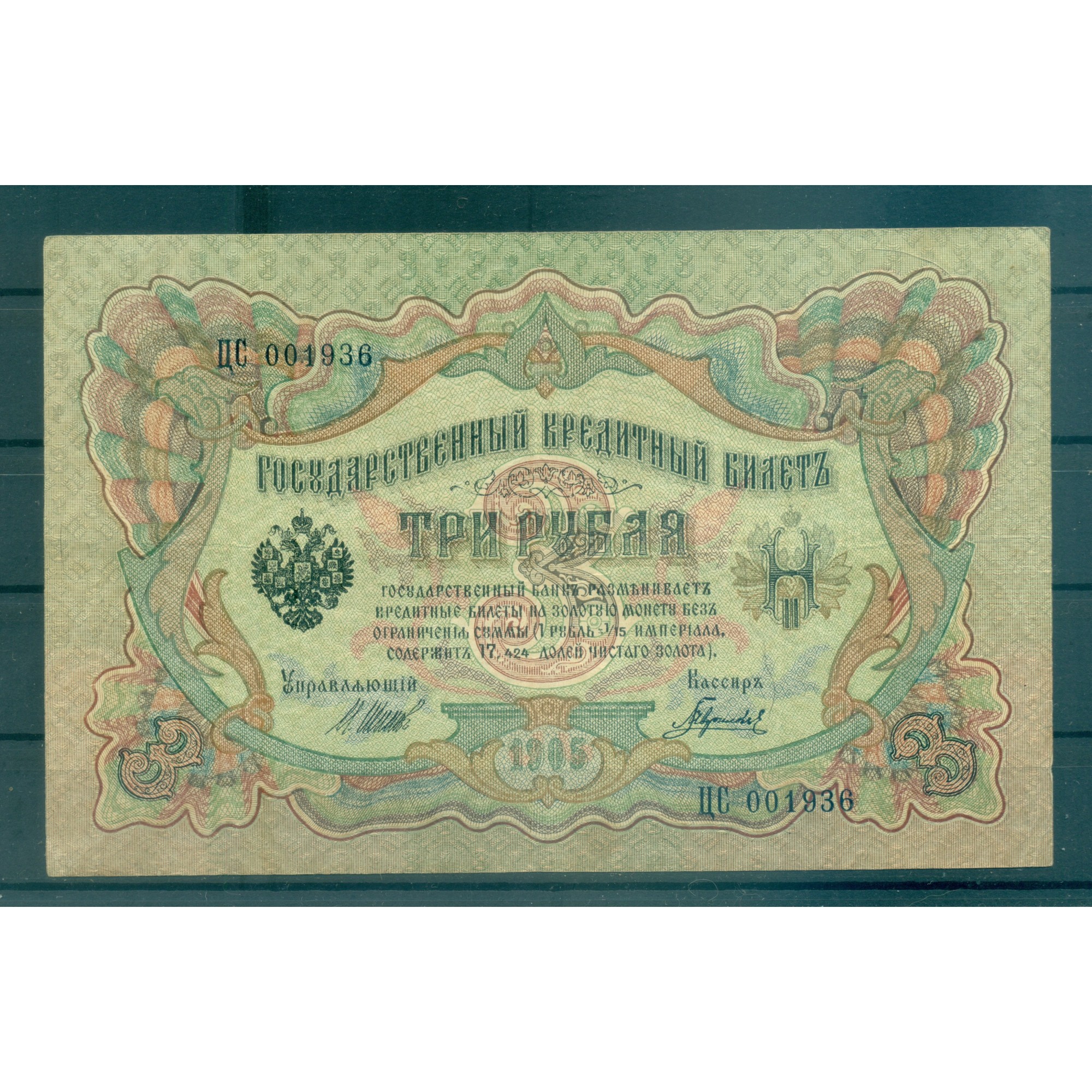Governo Provvisorio 1905-12 - Pick 9 c - Banconota della Banca di Stato 3 rubli - IPS/GIG (viii)