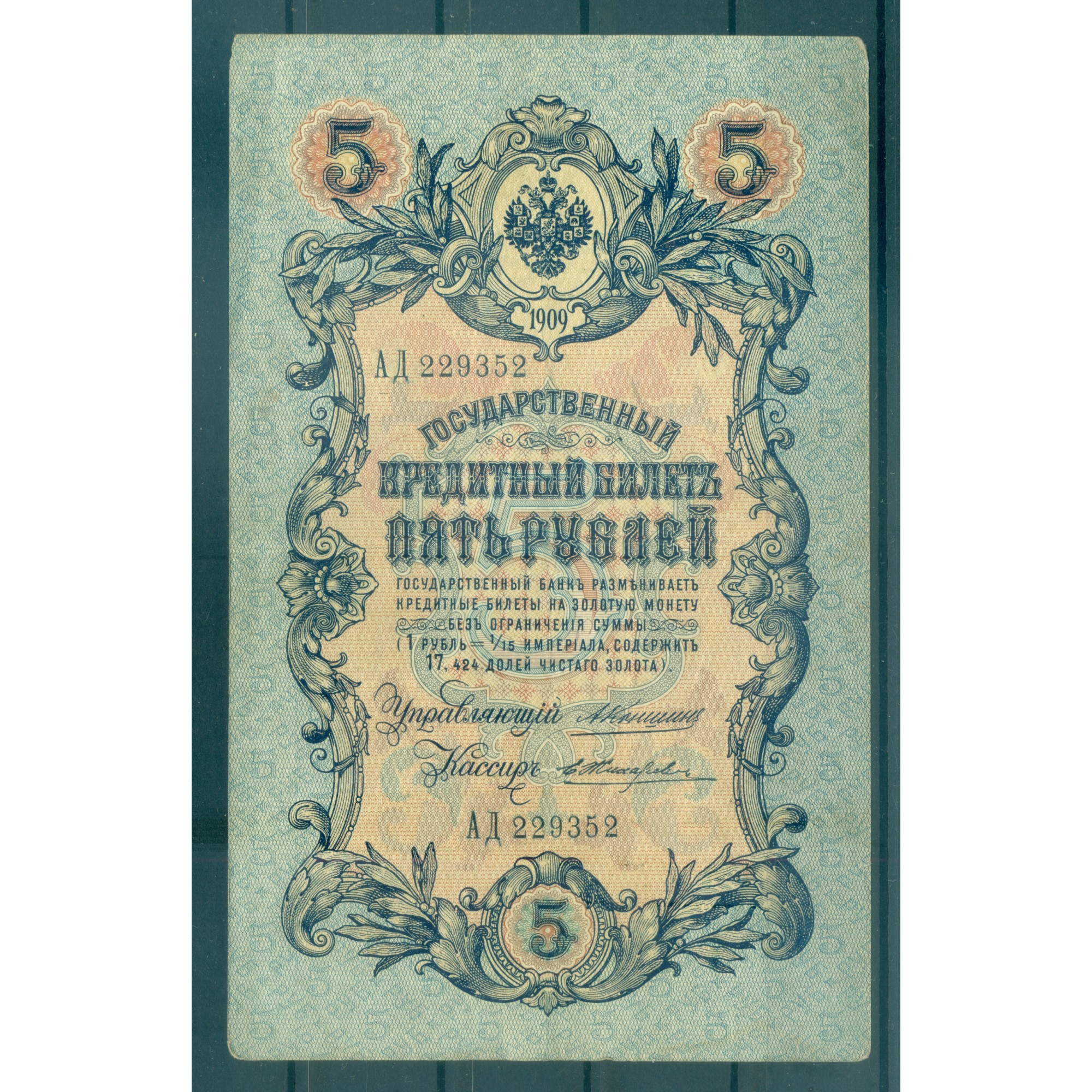 Impero Russo 1909 - Banconota della Banca di Stato dell'Impero Russo.