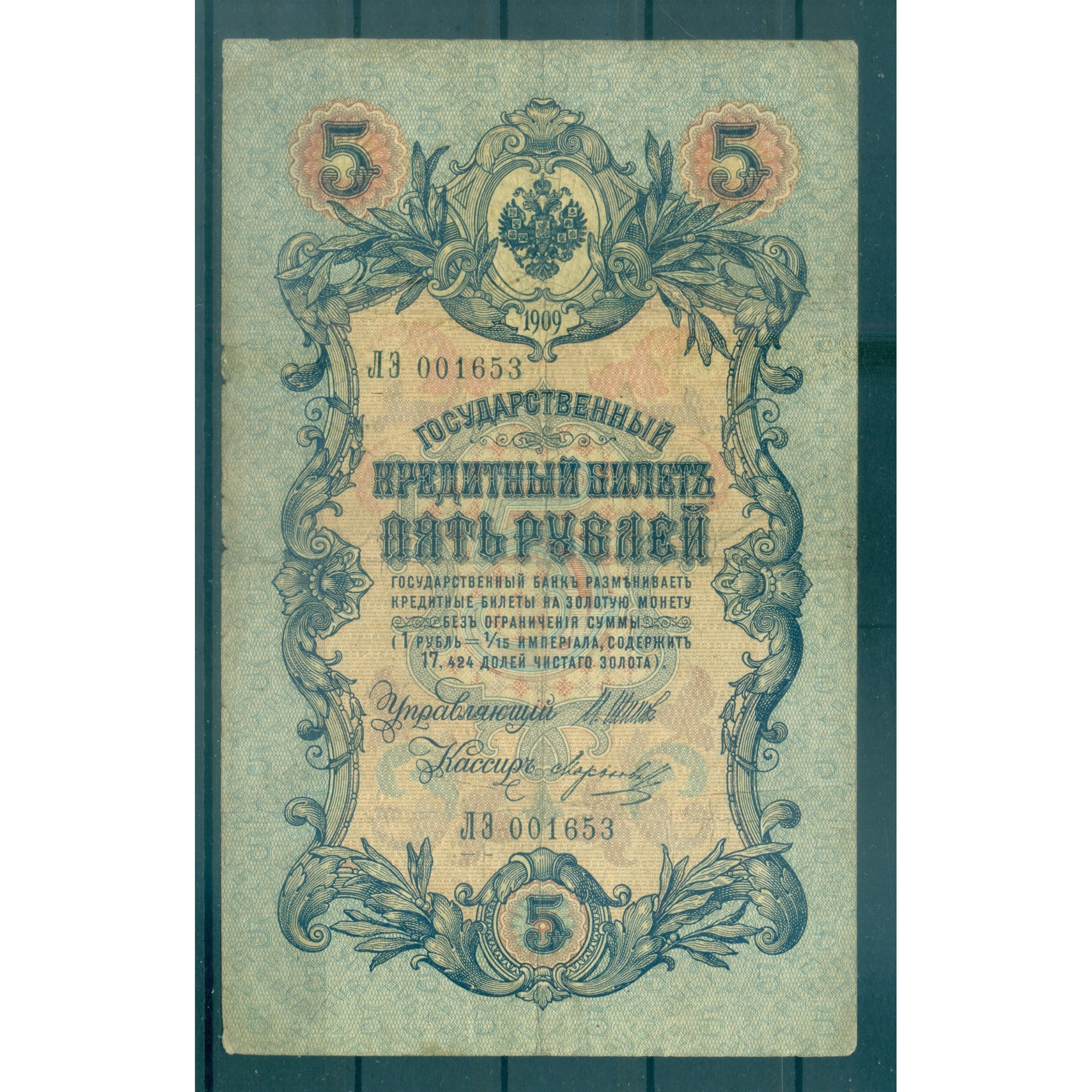 Impero Russo 1909 - Banconota della Banca di Stato dell'Impero Russo.
