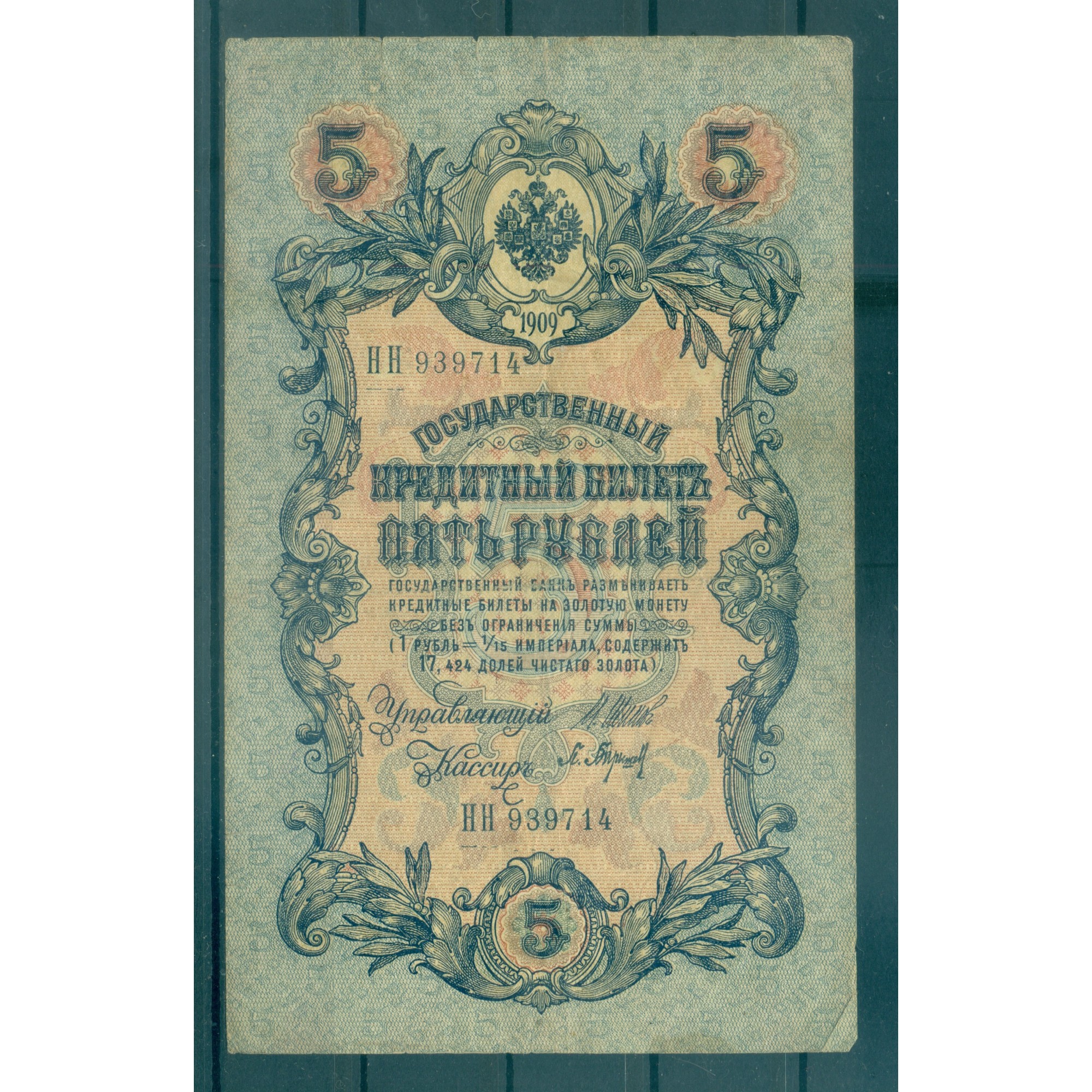 Impero Russo 1909 - Banconota della Banca di Stato dell'Impero Russo.