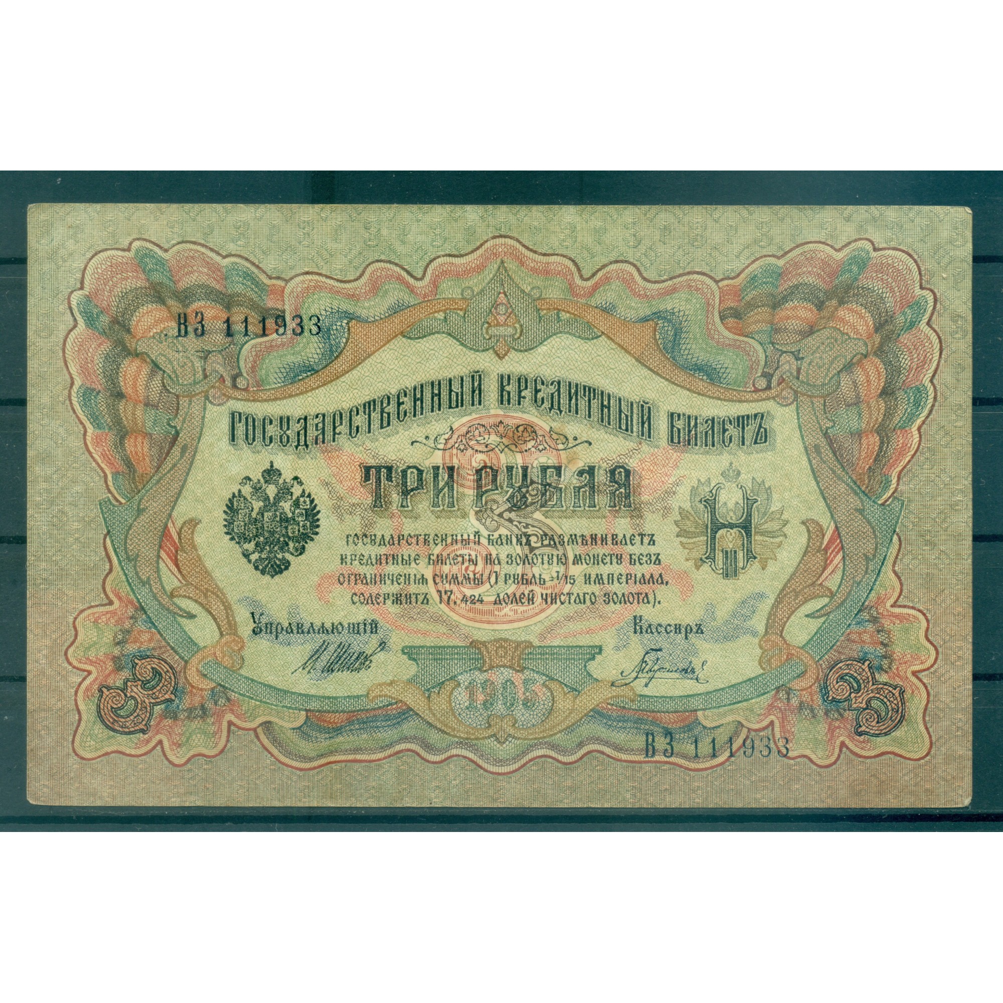 Impero Russo 1905-12 - Pick 9 c - Banconota della Banca di Stato 3 rubli - IPS/GIG (iii)