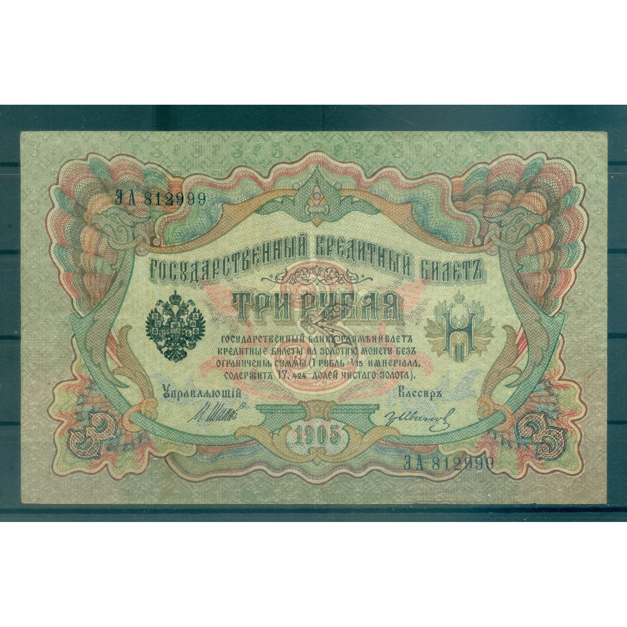 RSFSR 1905-12 - Banconota della Banca di Stato dell'Impero Russo.